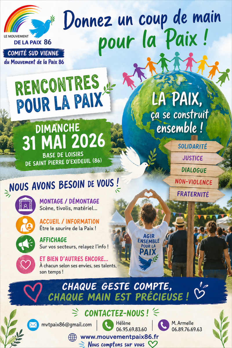 Programme de la Rencontre pour la Paix le 31 mai 2026 Saint-Pierre-d'Exideuil (86)